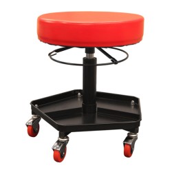 Ce tabouret réglable est doté d'une plateforme pour ranger les outils.