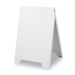 Ce chevalet de trottoir double-face, en PVC blanc, est conçu pour une utilisation en intérieur ou en extérieur. Sa surface à décorer (hors pied) est de 510 x 820 mm. Son format total est de 510 x 900 x 470 mm, pour un poids de 3,5kg. Il est livré sans visuel.