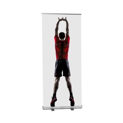 • Système à enrouleur double-face • Couleur aluminium • Fixation des visuels: bas double-face / haut rail clip • Carton individuel pour chaque roll-up + suremballage si vendu par multiples de 2